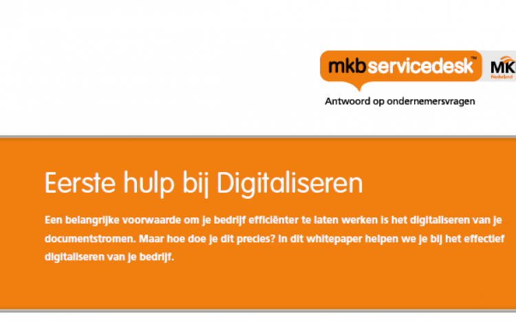 Madelon heeft een bijdrage geleverd aan een whitepaper 'Eerste hulp bij digitaliseren' van MKB Servicedesk. Een belangrijke voorwaarde voor een bedrijf om efficiënter te werken is het digitaliseren van de informatiestromen. Maar hoe doe je dat precies? In dit whitepaper wordt je geholpen bij het effectief digitaliseren van je documentstromen.